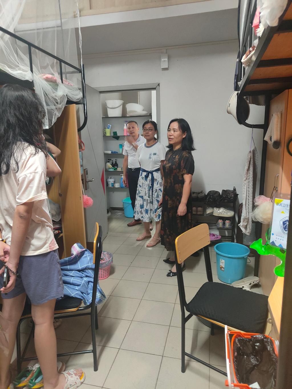 “返校途中是否受到台风天气影响?”“宿舍安顿好了吗?”“还有什么困难?”巡查和走访期间,学院领导与学生谈心谈话,询问学生返校情况,了解他们的思想动态、心理状态和适应情况,询问学生在学习生活方面是否存在困难,了解学生电动车处置情况,开展安全教育,并耐心解答学生提出的问题。