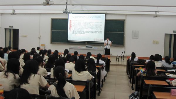 4月25日,德赢医学系在教学楼5-300举办了题为“护理核心与定位暨护士的未来之路”的专题讲座。本次讲座邀请了广东省医管会医院护理管理分会副主任委员,佛山市护理学会理事长、佛山市第一人民医院护理部主任张莉讲授,医学系负责人及护理专业两百多名师生聆听了讲座。