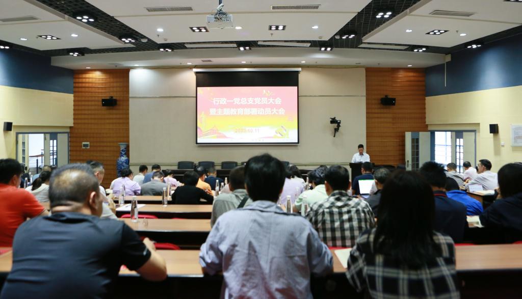 10月11日下午,行政一党总支在学术交流中心三号报告厅召开党员大会暨学习贯彻习近平新时代中国特色社会主义思想主题教育动员部署会,并上主题教育专题党课。行政一党总支全体党员参加会议。