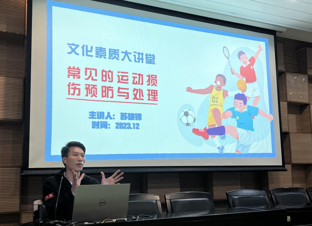 12月6日晚,由学生工作部举办的第二十六期文化素质大讲堂第三讲之“职业运动员视觉下常见的运动损伤预防与处理”在5号报告厅开讲。