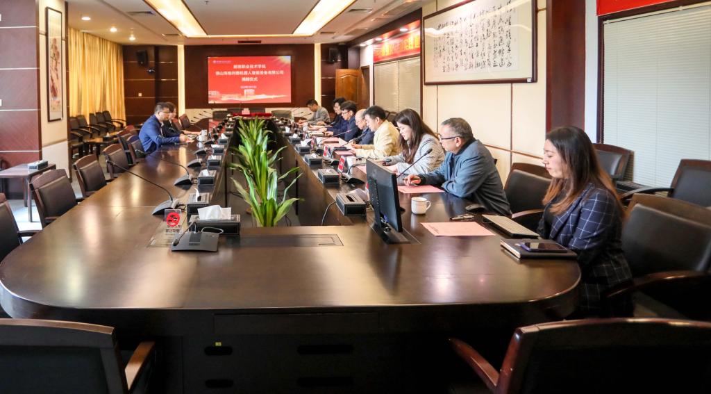 佛山海格利德机器人智能设备有限公司创始人李晨明、副总经理王辉,学校党委委员、副校长杨小东,学校党政办、科技处、资产与设备管理处、能源与汽车工程学院负责人等参加活动。