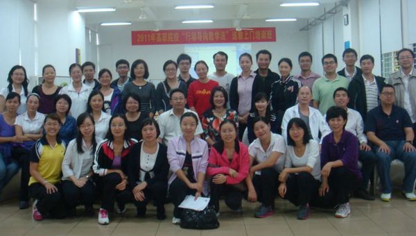 培训班重点学习了“行动导向”教学法中的小组教学法、引导文法、项目教学法、案例教学法等四种教学方法。培训过程主要采取分组讨论、完成任务、提交作品等行动导向形式,培训效果良好。通过培训,教师们深刻认识到“行动导向”教学方法的宗旨是以学生为中心,以行动为导向,在课堂中,教师少讲,学生多做,体现精讲多练。培训结束后,教师们对此次培训的内容和形式印象深刻、深受教益。