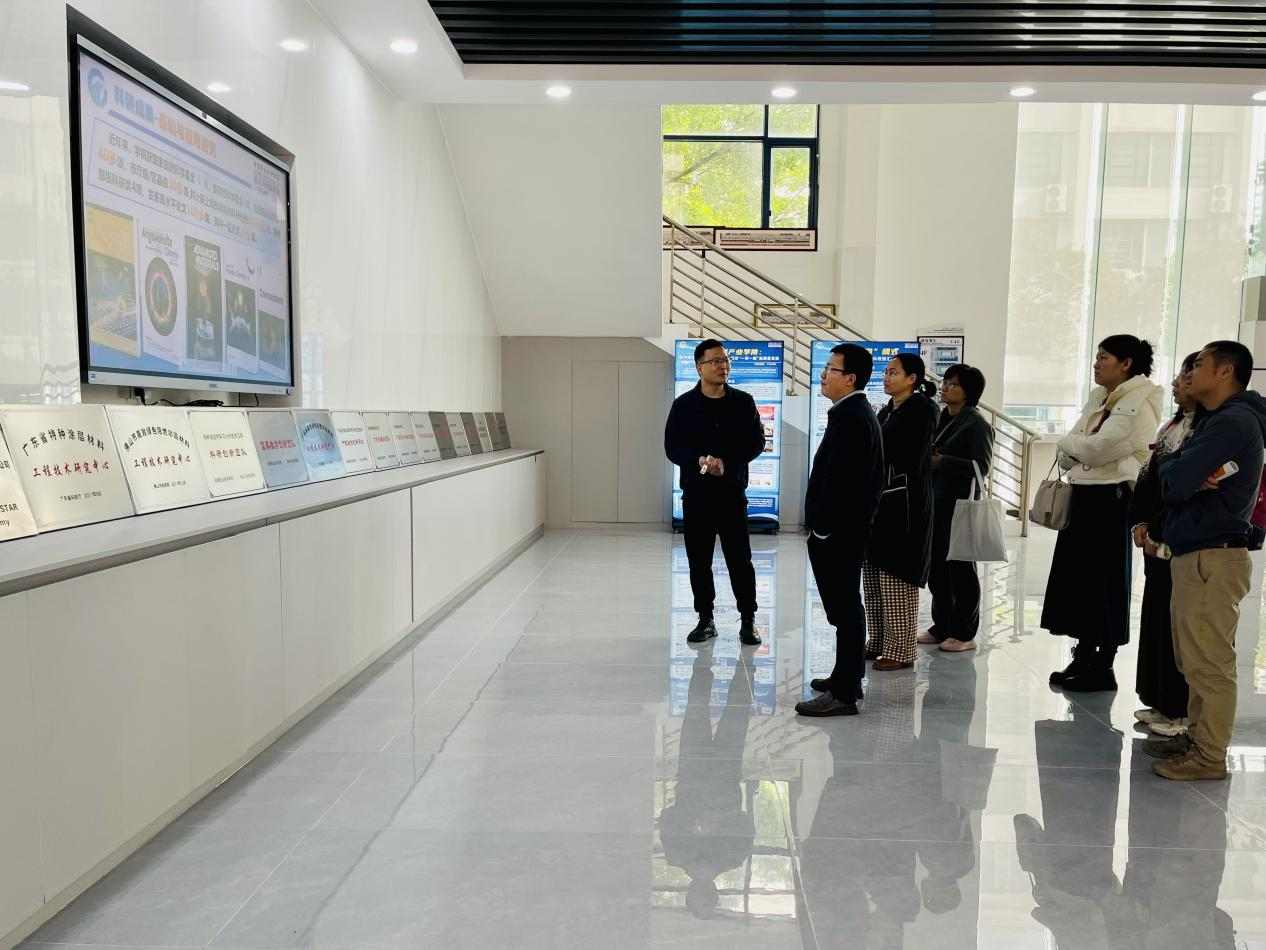 随后,蔡宗平一行参观了轻化与材料学院实训中心,刘锋围绕学院科研平台、科技成果及实验实训室建设等方面进行了经验分享。