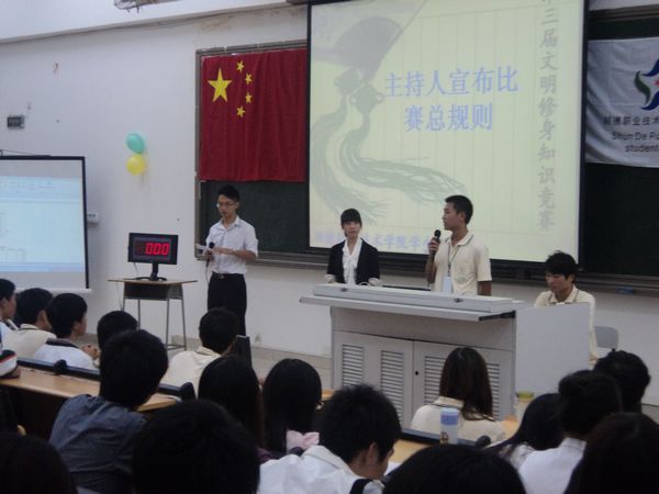 为了进一步提高德赢大学生思想道德素质,加强文明教育,促进校风学风建设,展现大学生文明风采,营造一个讲文明、知礼仪的文明校园氛围,11月28日晚,校学生会在教学楼8-300举行了以“文明修身”为主题的知识竞赛。学生处、校团委相关负责人和老师及300多名学生参加了该活动,共有来自各院系的9支代表队参加了本次知识竞赛。