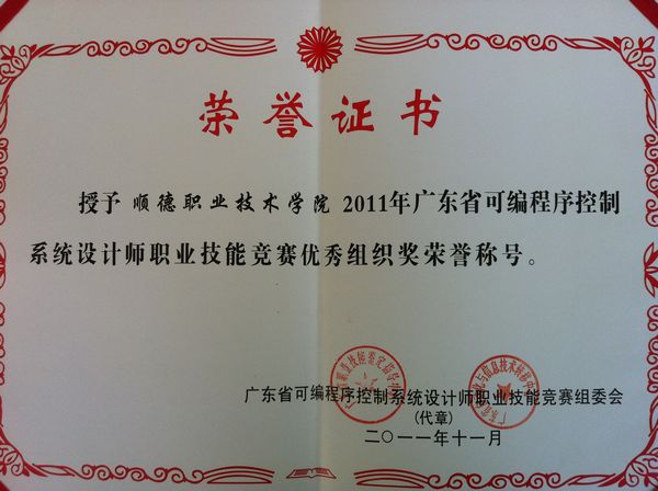 11月21日,由广东省职业技能鉴定指导中心、广东省自动化与信息技术转移中心主办的2011年广东省可编程序控制系统设计师职业技能竞赛落下帷幕。德赢由电信系余志鹏、邓霞、邓榆林三位老师组成的参赛队荣获职工组团体第五名和优秀团队奖,邓霞、邓榆林两位老师分别获得职工组三等奖,同时德赢还获得了优秀组织奖。