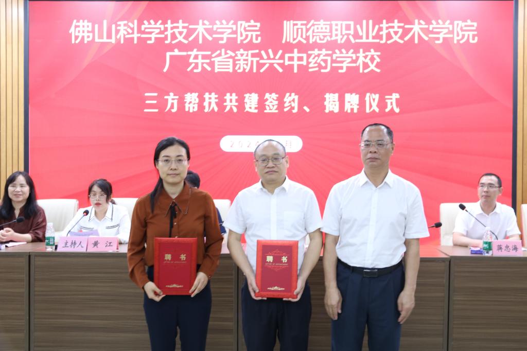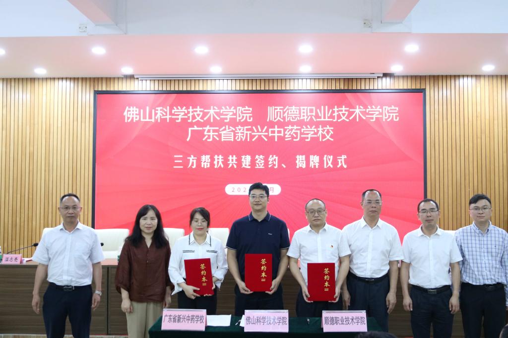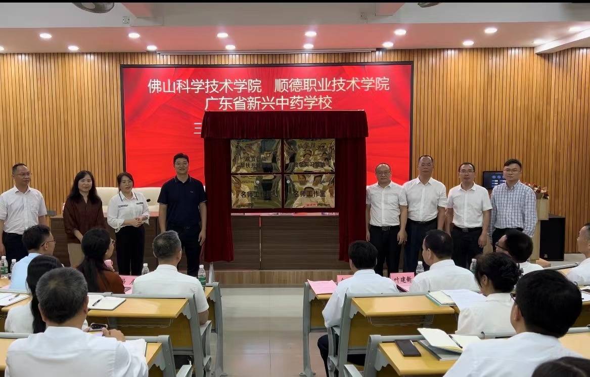 4月19日下午,德赢与佛山科学技术学院、广东省新兴中药学校开展结对共建,签署三方共建协议,进行“教学实习基地”和“名师工作室”揭牌。