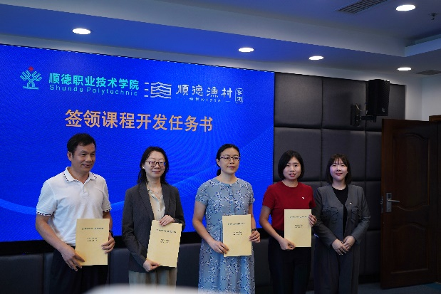 会上,德赢与顺德渔村集团签署战略合作意向书,双方携手合作,共同打造人才培养“明德班”。领导嘉宾还为顺德渔村集团授予“产教融合创新实践基地”牌匾、为企业导师颁发产业导师证书。课程模块负责人签领课程开发任务书。