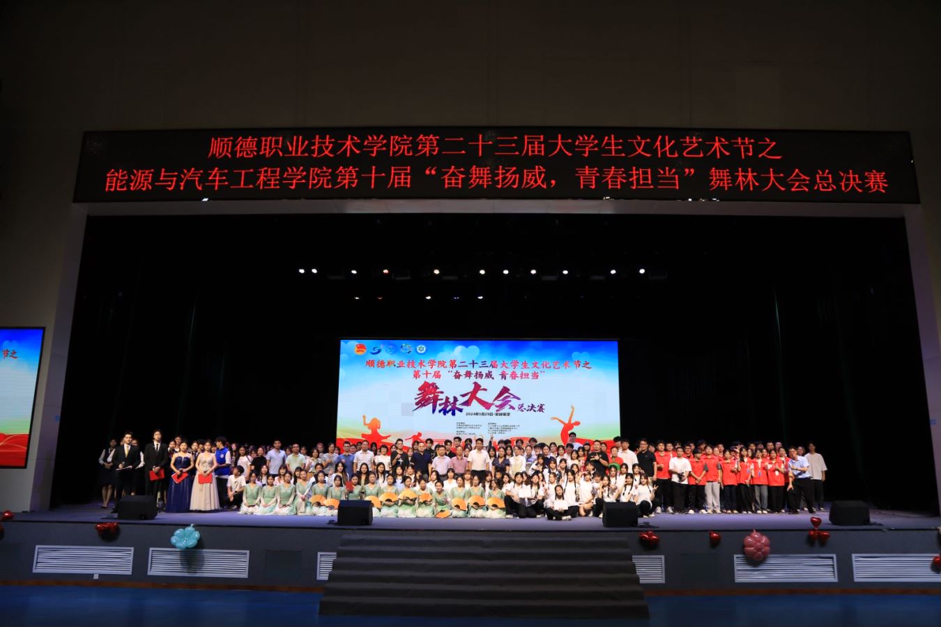 自今年4月比赛启动以来,参赛队伍经过初赛选拔,在总决赛场上为广大师生带来了精彩的视觉盛宴。活动在流行音乐《我们的明天》缓缓拉开帷幕,分为“舞动新时代,奋进百千万”和“献礼25年校庆,舞动10载芳华”两个篇章。《致青春》中青年学子借助热烈奔放的舞蹈以及欢快激昂的音乐,在舞蹈中巧妙融入了青涩的校园时光元素、激情四溢的大学生活场景以及对未来生活的美好憧憬。《雪崩》通过舞蹈表达了当校园霸凌发生在身边时大家要伸出援手,告诫大家杜绝校园暴力和欺凌。来自顺德区实验中学舞蹈队带来的胶州秧歌《春知沂蒙》让大家跟随舞者的步伐,感受着那春天的气息在沂蒙山间流淌,沉浸在这充满活力与希望的舞蹈世界中。朝鲜族舞《冬》带大家走进了那冰天雪地的世界,感受到朝鲜族独有的风情与浪漫。