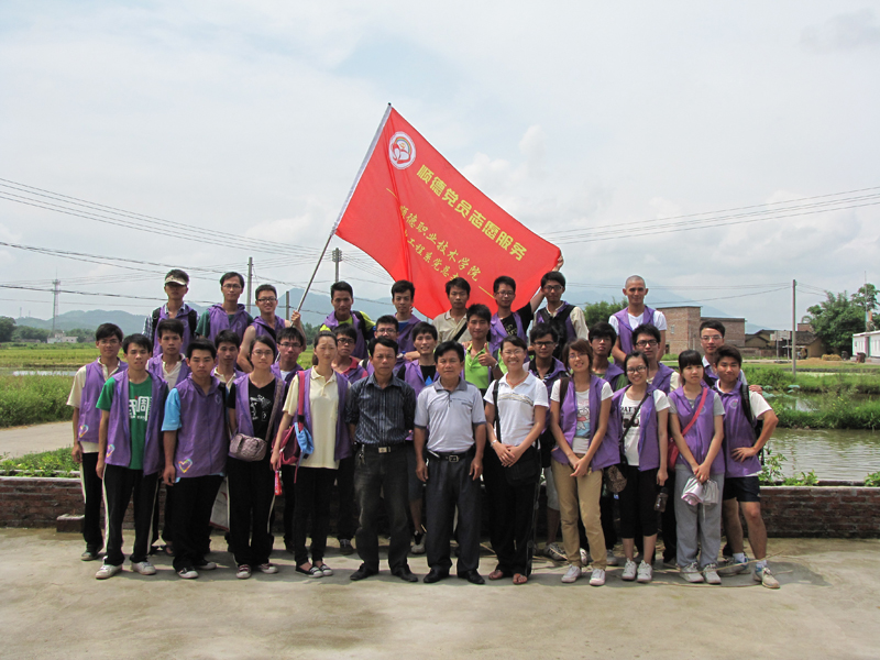 为庆祝中国共产党建党90周年,弘扬“奉献、友爱、互助、进步”的志愿者精神,积极参与服务基层、服务农村、服务群众、服务社会等各种公益活动,7月11-15日,机电工程系学生党支部一行30名学生党员在支部书记的带领下前往肇庆市怀集县岗坪镇开展了一系列的志愿服务活动。以“走向群众,贴近生活——学生党员红色社会实践”为主题的本次活动,开展了走访慰问、务农耕种服务、科普知识和医疗知识宣传、红歌传唱、聆听基层优秀老党员先进事迹、学生党员心得体会交流、与村民篮球友谊赛以及与同行的广东第二师范学院三下乡服务队联谊等丰富多彩的活动。