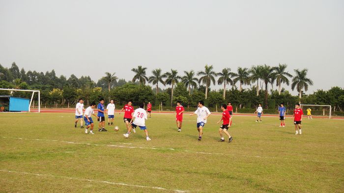 这次友谊赛是两个球队之间的第一次交锋,双方都非常重视本场比赛,赛前双方队员合影留念。比赛过程中,两队球员认真对待,积极跑动,表现出了良好的基本功和精湛的球艺。最终,两个球队以4:4的比分打平了比赛。中场休息和赛后,双方球员切磋球技,交流心得,气氛相当融洽。双方工会负责人就两校工会日常工作、教工文化体育活动等方面进行了交流。