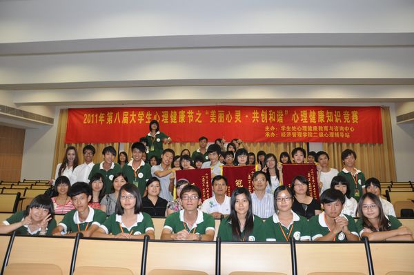 5月31日晚,由经济管理学院承办的第八届大学生心理健康节之“美丽心灵,共创和谐” 心理健康知识竞赛决赛在教学楼11栋学术报告厅拉开序幕。本次知识竞赛共有代表全校九个院系的11支参赛队伍参加,学生处、经济管理学院相关负责人及教师出席本次活动。