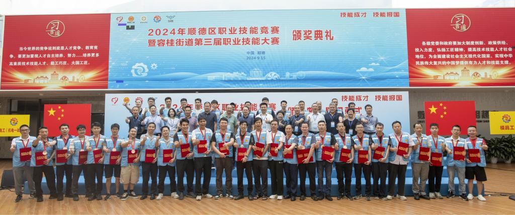 9月15日,由佛山市顺德区民政和人力资源社会保障局主办,顺德区容桂街道总工会、德赢承办的2024年顺德区职业技能竞赛暨容桂街道第三届职业技能大赛,在德赢广东-亚琛工业4.0应用研究中心举行。来自顺德区16家制造业龙头企业的56名优秀技能人才经过半年的集中训练后踊跃参赛,经过激烈比拼,大赛组委会评选出4名技能大师和22名技术能手,所有选手在获得荣誉和奖金的同时,还将获得电工、模具工高级工的职业资格证书,积极支持活动的格兰仕集团、海信家电、万和电气、海尔顺德4家公司获得优秀组织奖称号。