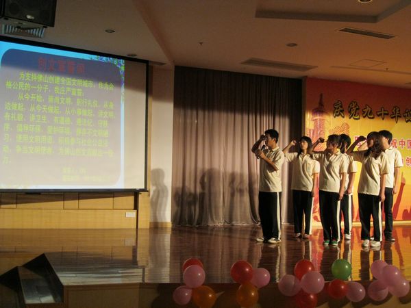 为了庆祝中国共产党九十华诞及响应佛山市创建全国文明城市行动,医学系于5月13日晚上在行政楼9楼教工活动中心举办了庆祝中国共产党成立90周年暨给力“创文”动员晚会。