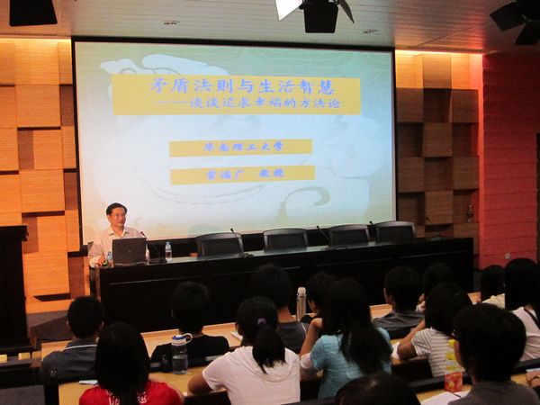 霍教授以生动的语言、详实的案例深入浅出地向大家介绍了当前人们追求幸福存在的几个误区,并从方法论的高度揭示了生活中矛盾的必然性及矛盾对立统一的根本属性。讲座重点与大家探讨了如何走出误区,体验幸福,既有理论高度,又与现实生活紧密贴近,引发了在场同学的强烈共鸣。