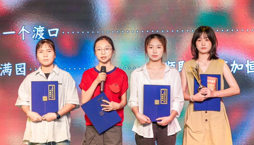 在颁奖典礼中,主持人即兴采访了获奖的陈加恒、马楚玉、钟佳莹、钟燕婷四位同学,钟佳莹表示:“通过本次活动,我们不仅在实践中密切了团队的协作能力、提升了创意视频的拍摄技术,也对顺德乡村文化产生更加浓厚的兴趣,对如今顺德乡村振兴与‘百千万工程’有了更深入的理解。”同学们的回答获得了在场领导和观众的一致好评,展示了当代大学生的风采。