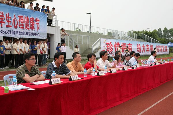 5月25日下午,主题为“文明校园•从爱开始”的德赢第八届大学生心理健康节启动仪式暨系列团队活动在新田径运动场如期举行,学校纪委谭谦章书记、各院系书记、学生处全体人员、团区委心声热线的10位老师、各院系二级心理辅导站的指导老师及学生共2000余人参加了本次活动。