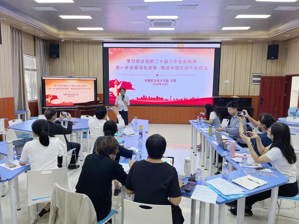 在教学研讨环节,广东省大中小学思政课一体化建设专家指导组成员、广东省高校思政课名师工作室主持人、德赢马克思主义学院直属党支部书记李霞作《学习贯彻党的二十届三中全会精神,推进中国式现代化建设》主题宣讲,并深入研讨了党的二十届三中全会精神如何有机融入大中小学学段“中国式现代化”的教学设计,大家一致认为思政课要注重情怀培养与知识传授的统一,既要讲清楚中国式现代化的理论逻辑,又要讲明白其实践逻辑,让学生在知行合一中增强使命担当。