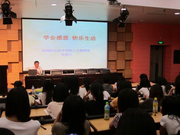 陈教授作了题为《学会感恩 快乐生活》的精彩讲座,内容由两部分组成,一是旁征博引我们传统文化中动人的感恩故事,并结合当前社会的现况,向我们生动地描绘了心怀感恩对于我们生活的重要意义,他认为在感恩中我们才能懂得珍惜,珍惜自我、珍惜生命,珍惜让我们成长的一切。只有心怀感恩,人生才会体味到温暖,才能充满温润和温馨。二是从钱钟书先生的《论快乐》一文出发,谈到梁启超先生对“快乐”的理解,让同学们明白什么才是真正快乐的生活,怎样才能与快乐生活相伴。