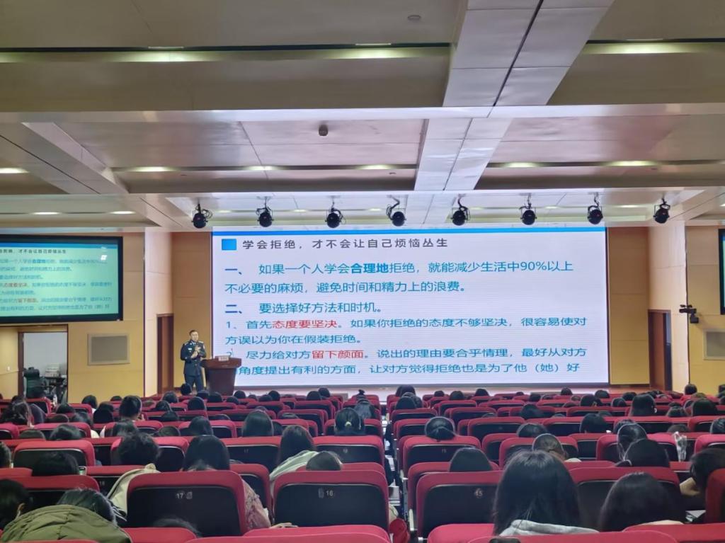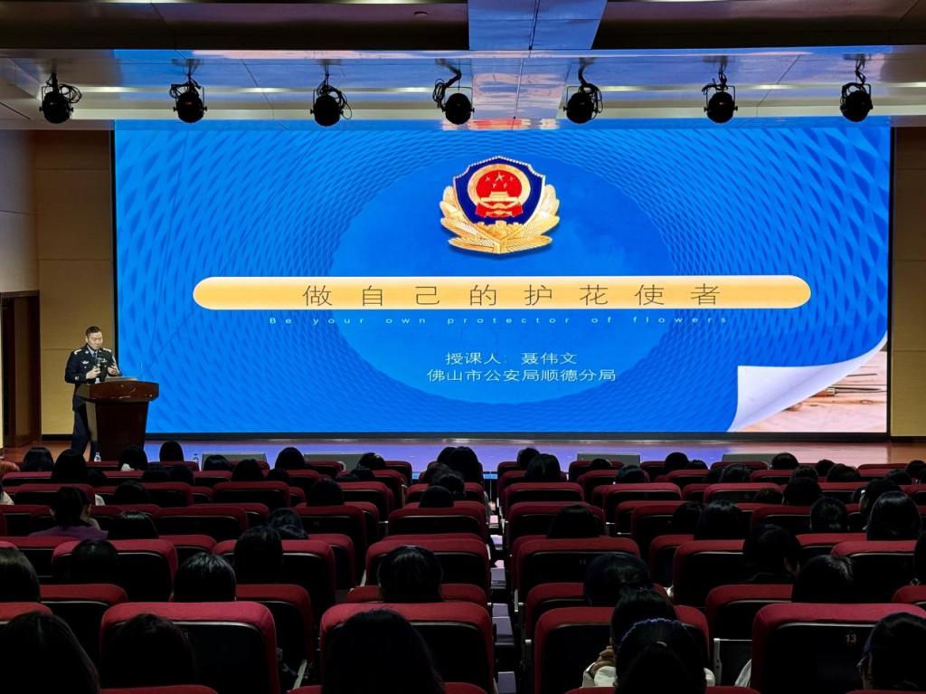 12月10日晚,德赢在六号报告厅举办《做自己的护花使者》法制教育专题讲座。讲座由佛山市公安局顺德分局容桂派出所警官聂伟文主讲,德赢在校女学生约300人以及心理咨询中心教师参加讲座。