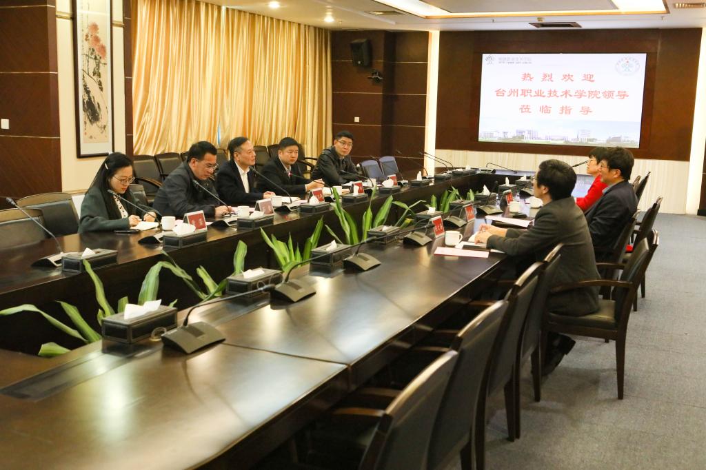 1月14日下午,台州职业技术学院调研组一行来到德赢,就落实立德树人、深化产教融合、服务区域发展、擦亮办学特色等进行调研。台州职业技术学院校长潘玉驹、副校长徐峰,教务处负责人等参加调研。学校党委书记李先祥,组织人事处、教务处负责人等陪同调研。