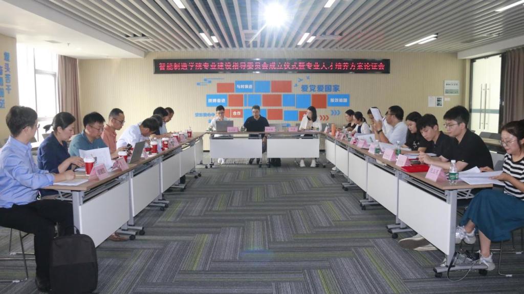 4月28日,智能制造学院在广东-亚琛工业4.0应用研究中心召开专业建设指导委员会成立仪式暨人才培养方案论证会。来自高校、行业领军企业的19名专家,优秀毕业生代表10人,智能制造学院书记饶喜明、院长宋玉宏,各专业负责人及教师等参加会议。会议由智能制造学院副院长胡建国主持。