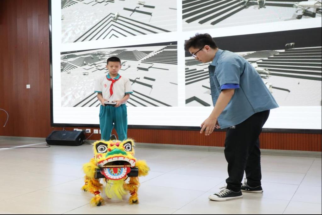 聘任仪式后,两位新任副校长率先“亮绝活”。胡浩操控的人机醒狮灵活完成抬头、低头、转身等动作,灵动姿态引得现场学生欢呼不断;孙婉纯展示的智驾小车凭借智能避障技术,精准应对模拟路况,直观展现人工智能的科技魅力。沉浸式互动体验中,学生们近距离触摸前沿科技,眼中满是探索求知的光芒。