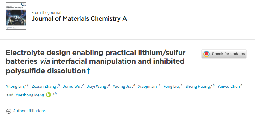 近日,德赢轻化与材料学院科研团队以第一单位在《Journal of Materials Chemistry A》发表了高比能锂硫电池最新研究成果,该成果题为《Electrolyte Design Enabling Practical Lithium/Sulfur Batteries via Interfacial Manipulation and Inhibited Polysulfide Dissolution》,该期刊影响因子10.7,属于JCRQ1 TOP期刊。德赢林乙龙博士为第一作者兼通讯作者,学生王佳仪,贾雨晴等共同参与了这项研究工作。该成果得到国家自然科学基金、广东省教育厅普通高校重点领域专项等项目的支持。