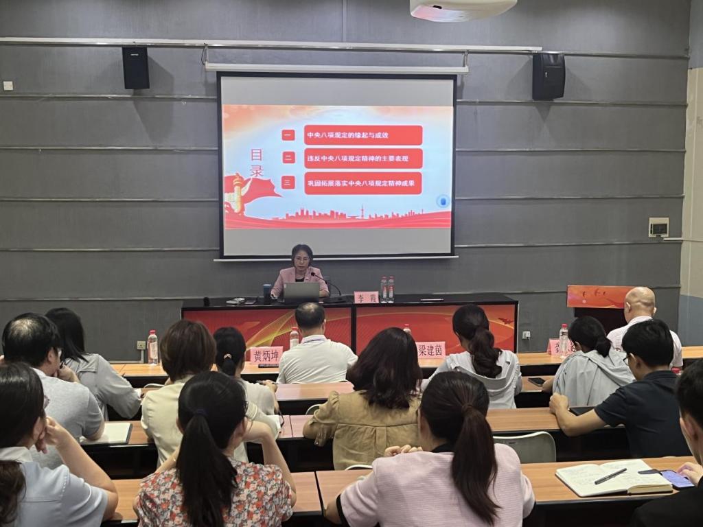 活动邀请德赢马克思主义学院直属党支部书记李霞教授作题为《深学细悟八项规定:新时代全面从严治党的关键抓手》的专题讲座。她从中央八项规定的缘起与成效、违反中央八项规定精神的主要表现、巩固拓展落实中央八项规定精神成果等三个方面,结合党史与实际案例,深入浅出地讲解相关规定,进一步加深全体员工对中央八项规定精神的认识。