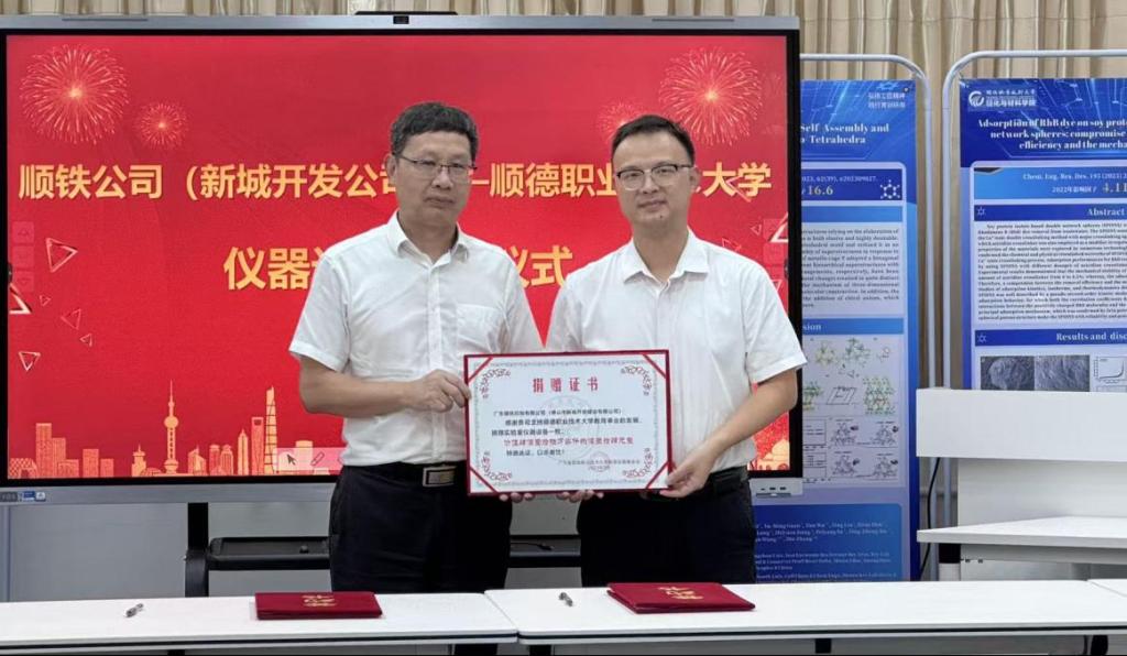 9月4日下午,广东顺铁控股有限公司向德赢捐赠实验室仪器设备,仪式在轻化与材料学院实训中心举行。顺德区国资局副局长冯家辉;顺德区科技局股长卢晋炜;顺铁公司总经理彭述平、党委副书记孔庆超;德赢党委委员、副校长李天赠,资产与设备管理处处长张斌,轻化与材料学院院长陈燕舞、党总支书记刘红等参加活动。