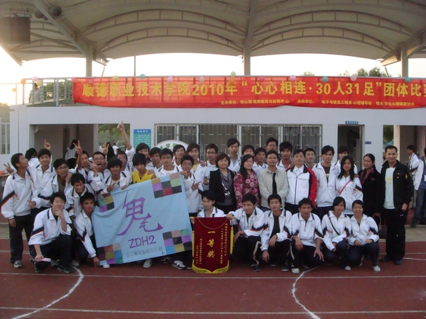 12月8日下午,由学生处心理健康教育与咨询中心主办,电信系二级心理辅导站、校大学生心理健康协会承办的顺德职业技术学院2010级新生“心心相连·30人31足”团体比赛在学校塑胶运动场举行,学生处相关负责人、各院系二级心理辅导站指导老师及学生近900人一起参与了本次活动。