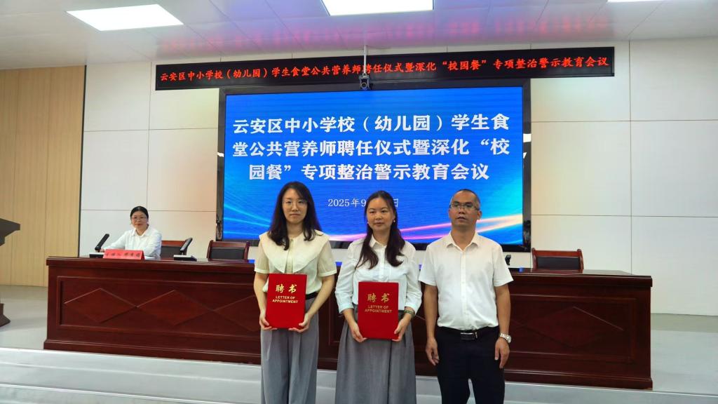 与此同时,德赢烹饪学院教师鲍亦璐、区晓丹参加云安区教育局召开的“全区中小学校(幼儿园)学生食堂公共营养师聘任仪式暨深化‘校园餐’专项整治警示教育会议”,并被正式聘任为云安区中小学食堂公共营养师。会上,两位教师为当地中小学校(幼儿园)有关负责人及饭堂管理人员、厨工等开展了学生营养与食品安全专题讲座。今后,他们将协助学校科学制定带量食谱,推动餐食管理标准化、精细化,切实保障膳食均衡,全力守护学生营养健康。