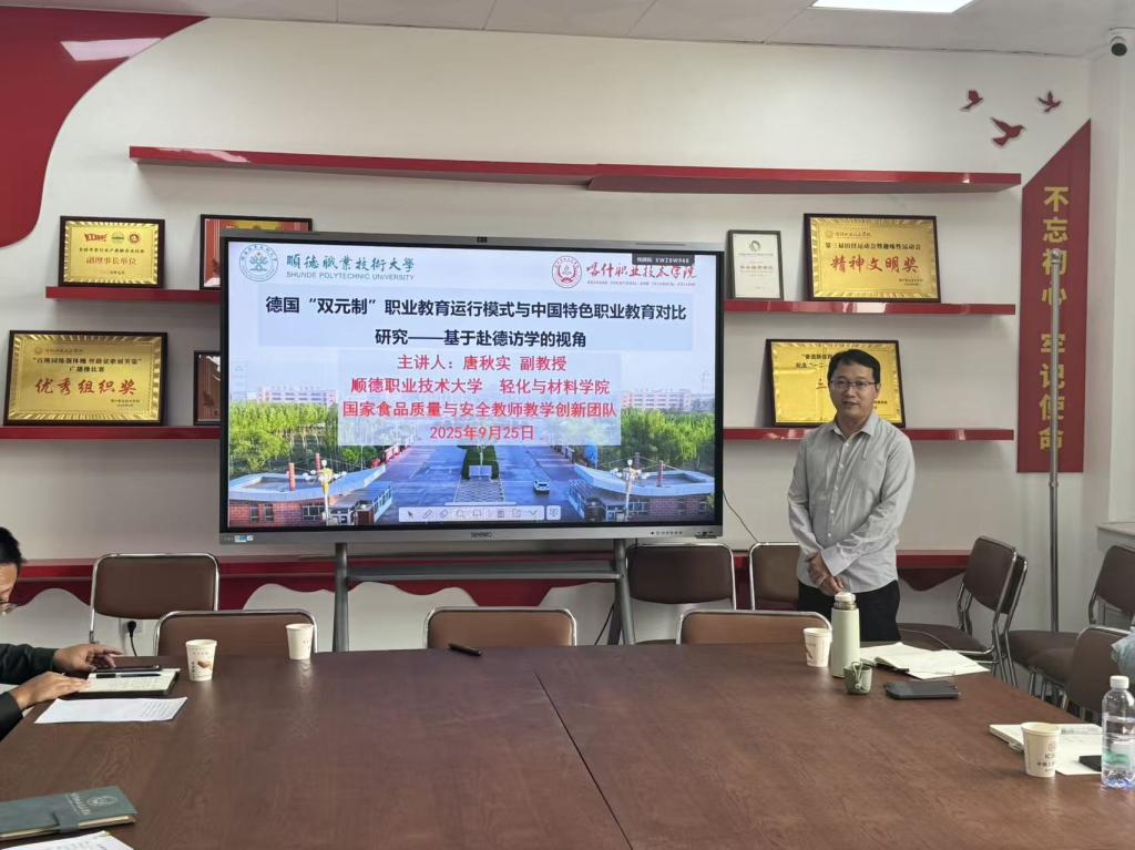 第二场讲座由小组团成员唐秋实副教授主讲。他结合赴德国访学的经历,为与会人员带来关于德国双元制职业教育体系的分享,并深入讲解了德国双元制模式的组织形式,以及师资培养机制等内容,为在场教师提供了国际职业教育理念和模式参考。