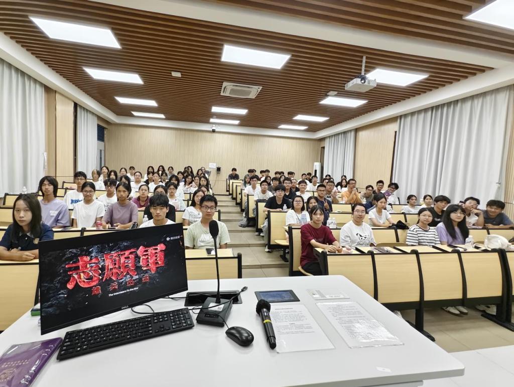 10月7日晚,“光影铸魂”爱国主义观影活动在智慧教室温情开展。同学们共同观看主旋律影片《志愿军:雄兵出击》,通过光影艺术重温革命先辈的奋斗历程,感受志愿军战士保家卫国的热血担当。现场气氛庄重而热烈,不少同学在观影后分享感悟,表示深刻体会到如今幸福生活的来之不易,进一步坚定了“强国有我”的理想信念,激发了新时代青年的爱国热情与时代责任感。