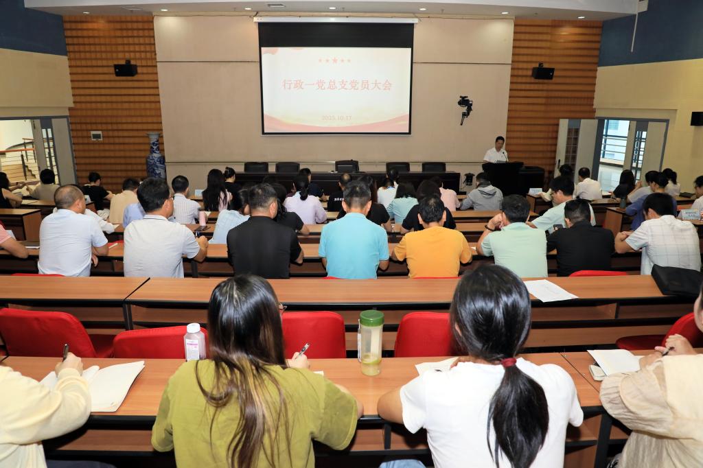 10月17日下午,行政一党总支在学术交流中心3号报告厅召开党员大会,学习贯彻习近平总书记在庆祝中华人民共和国成立76周年招待会上的重要讲话精神,审议行政一党总支2025-2026学年第一学期党建工作计划。行政一党总支全体党员参加会议,行政一党总支书记王晓主持会议并领学。