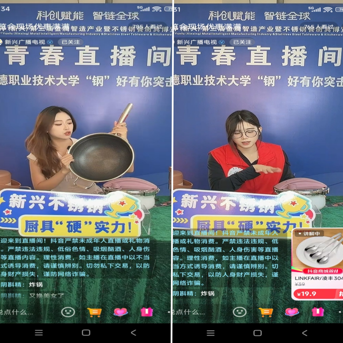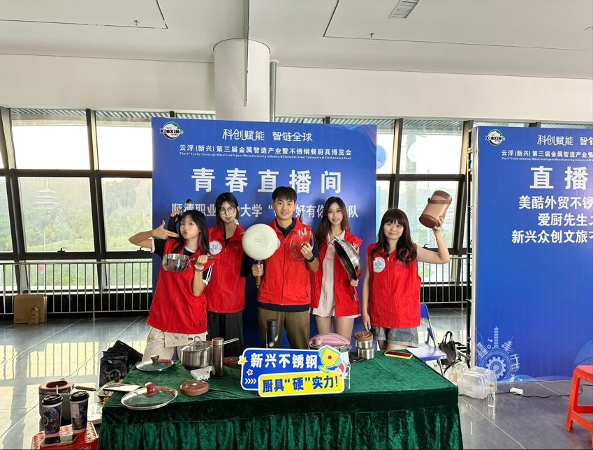 10月17日至19日,云浮(新兴)第三届金属智造产业暨不锈钢餐厨具博览会举行。外语外贸学院的学子们化身直播间“带货达人”,为新兴不锈钢餐厨具产业注入青春活力。