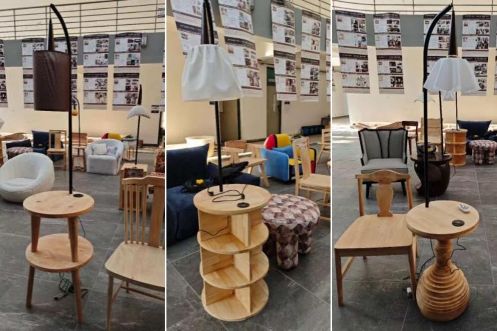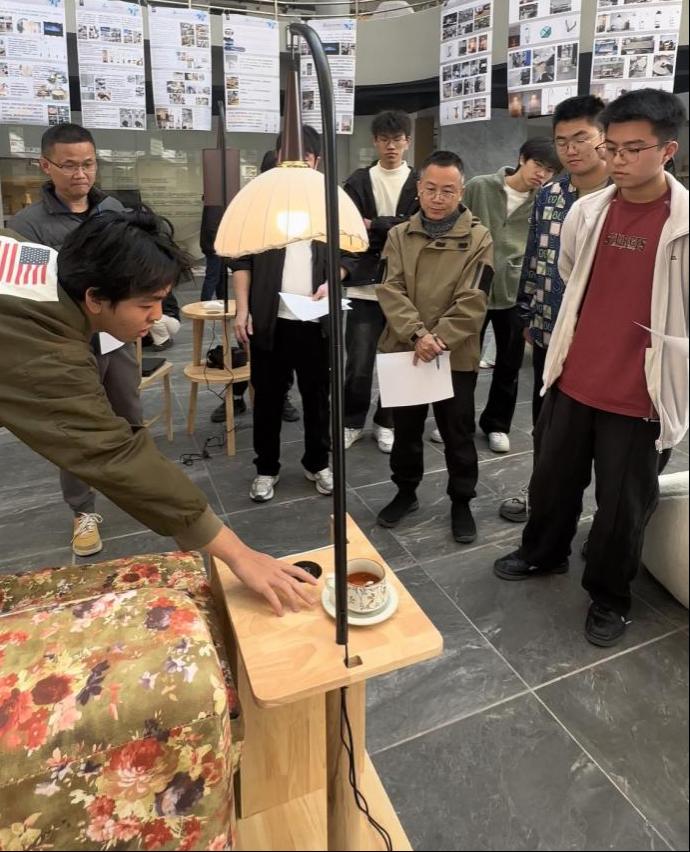 经过数周的努力,一件件凝聚着心血的智能一体灯柜终于诞生。在设计学院三楼中庭集中展出,同时进行现场答辩。
