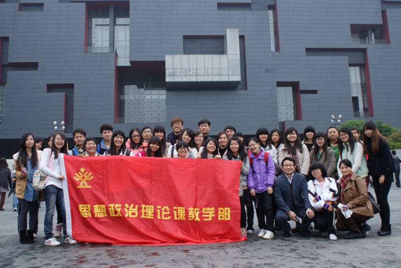 胡锦涛同志在十八大报告中强调,文化是民族的血脉,是人们的精神家园;要深入开展社会主义核心价值体系学习教育,用社会主义核心价值体系引领社会思潮、凝聚社会共识。为此,思政部确定本学期的学生校外实践教学活动围绕两个主题展开:一是通过带领学生参观广东省博物馆,让学生学习了解广东的历史文化,增强爱国主义情怀和民族自豪感;二是通过带领学生参观中共“三大”会址纪念馆,让学生重温党的历史,回顾党带领各族人民浴血奋战建设新中国的艰难历程,增强热爱党、热爱社会主义的信念。