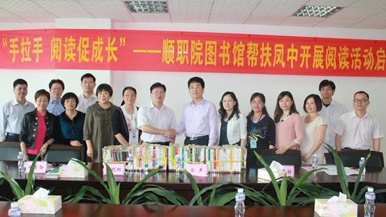 5月6日,“手拉手——阅读促成长”活动暨顺职院图书馆社会服务帮扶凤城初级中学开展阅读活动的启动仪式在图书馆举行。顺德区凤城初级中学袁晓明校长、何楚勋副校长,德赢图书馆相关负责人以及双方工作人员共三十余人参加了仪式。仪式由德赢图书馆相关负责人主持。