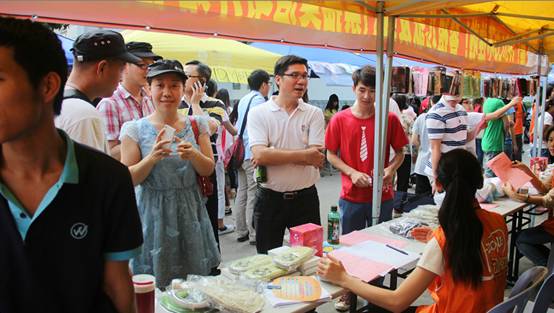 5月13-16日,德赢第十三届大学生文化艺术节之2013年大学生“创业街”活动在生活区学生公寓1-8栋前隆重举行。活动期间,学生处、校团委相关负责人、老师及各院系师生深入创业街现场感受创业的激情,享受“淘宝”的快乐。