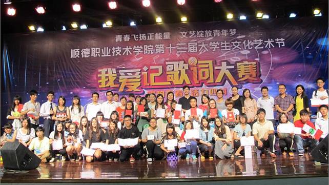 5月20日晚上,由学生处、校团委主办,外语系学生会承办的德赢第十三届大学生文化艺术节之“我爱记英、日文歌词比赛” 总决赛在梁銶琚礼堂圆满落幕。学生处、校团委、外语系相关负责人,评委老师,来自全校各院系的参赛队伍及300多名学生参加了本次活动。