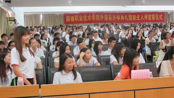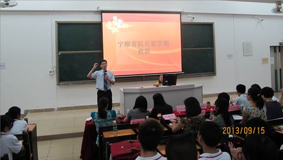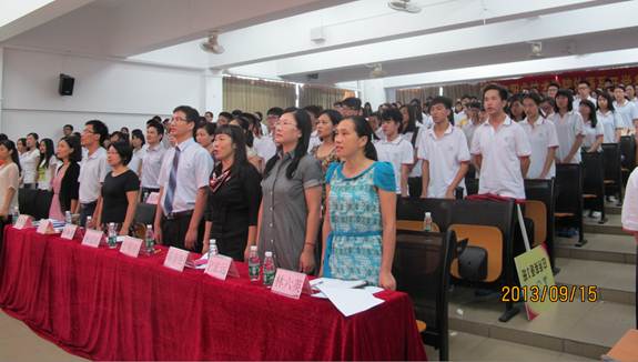 9月15日下午,外语学院开学典礼暨新生入学宣誓仪式在3栋300教室举行。外语学院相关负责人、英语日语教研室主任、辅导员、2013级各班班主任、优秀毕业生代表以及全体新生参加了本次活动。学校教务处负责人,督导室、教务处相关教师莅临指导。开学典礼由外语学院相关负责人主持。