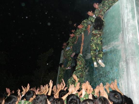 学员们进行了“同心鞋”、“ 高空挑战”、“ 野炊”、“ 鼓舞飞扬”、“七巧板”和“攀爬毕业墙”等项目的训练,通过每个项目的体验和分享,特别是150人的集体用时14分钟完成了4.5米高强的攀越,让学员们深刻体会到只有要不断挖掘潜力、突破自我、脚踏实地,才能走向成功的彼岸。同时,此次拓展训练,改变了同学们固有的思维模式,让大家领悟了创新的重要意义,并深刻体会到了团队的巨大力量。