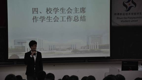 校团委相关负责人、老师、校学生会主席及各个部门部长分别对本学期的学生会各项工作进行了总结,重点对迎新生、中秋游园、校运会、新生杯篮球赛、文明修身活动、女生节、服务日等活动进行了经验总结与分享。随后,学校党委齐振彪副书记为获得2012-2013学年度“优秀学生会”的五个单位进行了颁奖,并进行了热情洋溢的讲话,他从自己做学生干部的经历谈起,结合“陈智奖学金”获得者的成长经历,给在座的学生干部分享学生干部经验,最后寄语学生会的干部干事们要“能干事,能共事,必能成大事;能吃苦,能吃亏,凡事见可为;懂感恩,善报恩,处处遇贵人!”