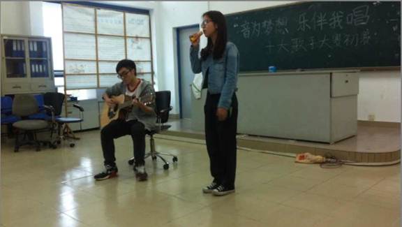 在初赛现场,教室外的选手们都在认真准备。有人拿着吉他、小提琴等乐器反复演练,有人带着耳机反复哼吟,寻找乐感。这无疑给比赛增加了不少的紧张感。在教室内,选手们正在争相竞逐进入复赛的16个名额。他们无论是在对歌曲的演绎上还是在舞台表现力上,都展示出了强大的实力,使得整场比赛高潮迭起。