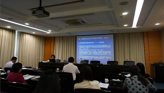 本次培训以“新制订(修订)的财务制度解读”为主题,由财务处从制度制订(修订)的背景、依据及学习关键点三个层面解读《顺德职业技术学院财务制度(修订)》、《顺德职业技术学院支出管理办法(暂行)》、《顺德职业技术学院预算管理办法(暂行)》、《顺德职业技术学院财政票据管理办法(暂行)》。本次培训还结合财务管理工作实际需要,特别邀请了学校办公室、组织人事处对《顺德职业技术学院公务接待管理办法》、《顺德职业技术学院公务用车管理办法》、《顺德职业技术学院师资培训专项经费管理办法》进行了解读与业务指导。