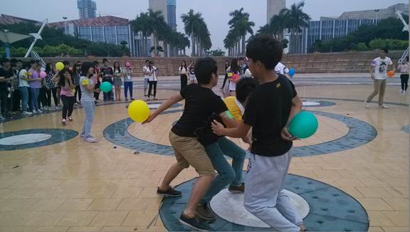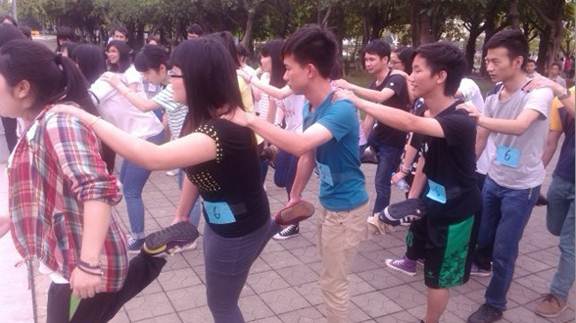 下午两点,由主持人宣读介绍活动目的、团队训练项目规则、评分细则以及注意事项后开始。依据抽签结果,各队由社联干部和协会会长带领组员进行“中国好脚法”、“甩掉便利贴吧”、“报幕和疯狂躲避球”等训练项目。训练过程中,各队通力配合,积极参与,在一片欢乐的笑声中完成了全部项目。训练结束后,主持人宣布最后的结果并按名次进行相应奖励。最后,经管社联主席对活动进行了总结,肯定了当中的意义和好人好事。