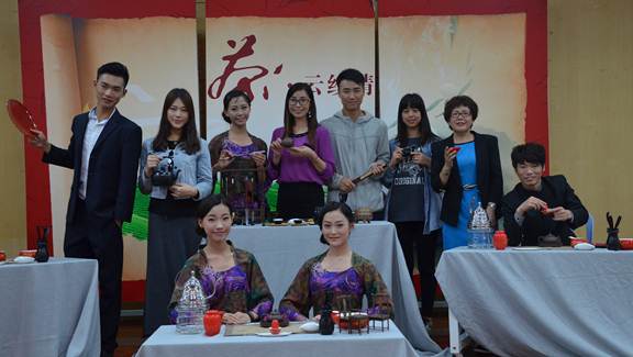 在学生汇报及表演环节,会展策划与管理专业香港展会服务队、茶艺参赛队、导游服务参赛队分别进行了汇报表演,工会也带来了李丽老师指导的舞蹈《萨萨嗨》,学生精彩的表演赢得了满堂喝彩。