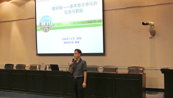 陈砺教授根据自己多年担任教研室主任的经验与体会,从理论课教学组织、实践课教学组织、专业建设、教学改革与研究等方面,详细地为大家讲解了教研室主任的职责及注意的问题。陈砺教授还结合自身的专业实际,介绍了如何形成核心知识,专业支撑知识和根据学科发展及社会需求滚动设置的交叉、应用型知识相互协调、合理配置的课程体系。报告最后,陈砺教授以“敢为有位而有为,不为无位而无为”两句话与在座教研室主任共勉,激励大家不怕吃亏、敢于担当、甘于奉献。