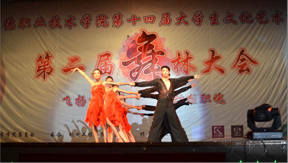 莲叶田田,菡萏含苞;凤凰花开,玉兰飘香。在花开满园的五月,经过初赛、复赛的层层选拔,共有来自全校11支队伍共104名舞蹈爱好者进入决赛。寒梅傲雪,众芳摇落独暄妍;茉莉芬芳,暗香盈袖醉人心;白毛红掌,浮水曲项向天歌:民族舞优雅绚丽而不失生动活泼,引人入胜。婀娜款摆,尽显《伦巴》的缠绵和柔媚,性感与热情。鼓笛齐鸣,《Unbreakable》融绘画、舞蹈为一体,新意迭出。《Only one》感人、梦幻,无可取代。《韩热串烧》尽情释放青春活力。《We are dancing》用爵士、百老汇等多种风格立体地展示大学生的多彩剪影。表演者用丰富的肢体语言、传神的面部表情和燃烧的青春激情频频引爆全场,将晚会气氛不断推向高潮。
