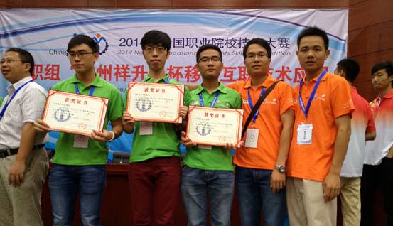 6月18-26日,德赢电信学院5支代表队参加了在江苏和天津举办的2014年全国职业院校技能大赛的5个竞赛项目。经过激烈的角逐,共获得1个二等奖4个三等奖的好成绩。其中,由曾沼君、杨磊和林太光老师指导的刘茂彬、黄敬开和董学良同学参加的“移动互联技术应用”赛项中荣获了全国二等奖,由张宇辉、郭琳老师指导林贵斌、曾春盛和陈伟斌同学参加的“云安全技术应用”,蔡永昶、蔡泽凡指导赖石华、杨志聪和苏锦豪同学参加的“嵌入式技术应用开发”、王丽杨、叶睿指导林俊杰、张羽玲、龚伟明同学参加的“基站建设维护及数据网组建”以及邱昌辉、李亚军老师指导林业森、唐众健同学参加的“电子产品芯片级检测维修与数据恢复”4个赛项荣获全国三等奖。